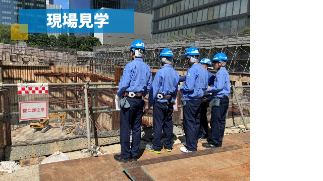 ・建設現場見学:「山留工事」が行われている現場に足を運び実際に目にすることで、当社の仕事のスケールの大きさ、現場のリアルを知る。